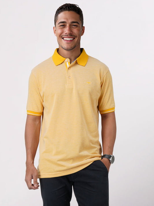 Park Avenue Yellow Solid Slim Fit Half Sleeve Cotton Blend T-Shirt