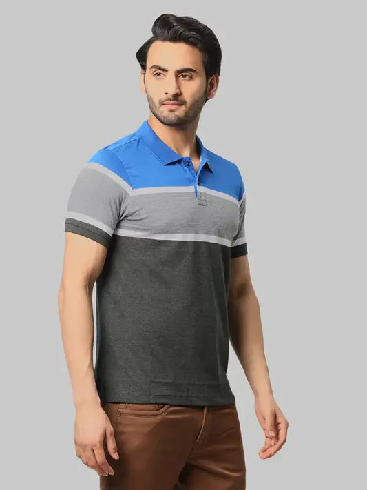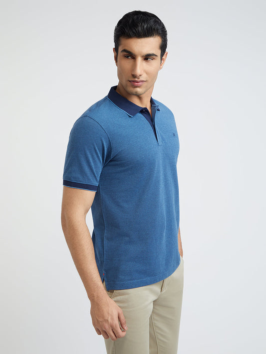Men Blue Regular Fit Yarn Dyed Cotton Round Neck Collar Polo T-Shirt