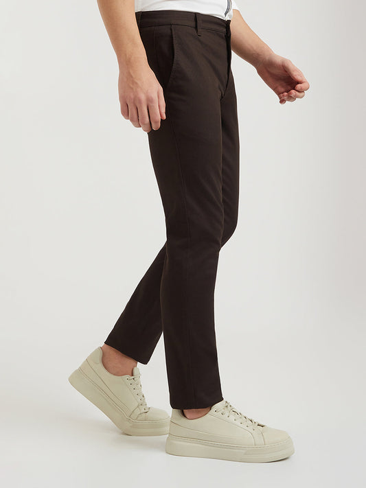 Men Brown Super Slim Fit Structure Polyester Blend Trouser