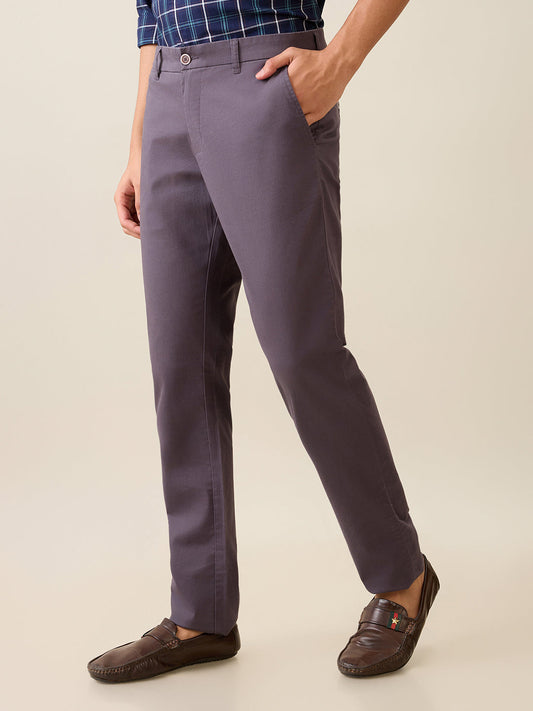 Parx Men Grey Solid Low Rise Tapered Fit Cotton Blend Trouser
