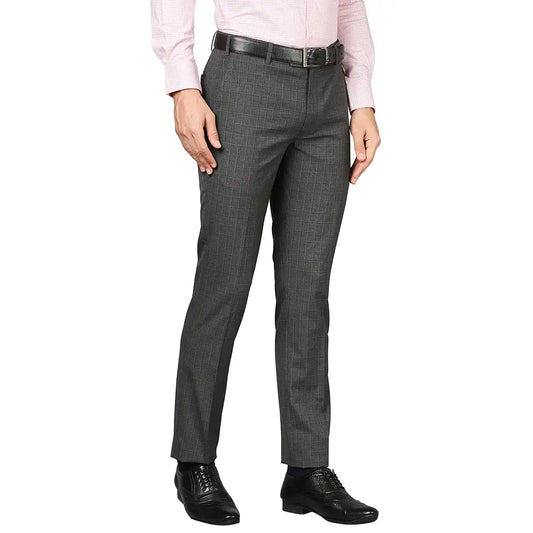 Men Grey Super Slim Fit Checks Polyester Blend Trouser