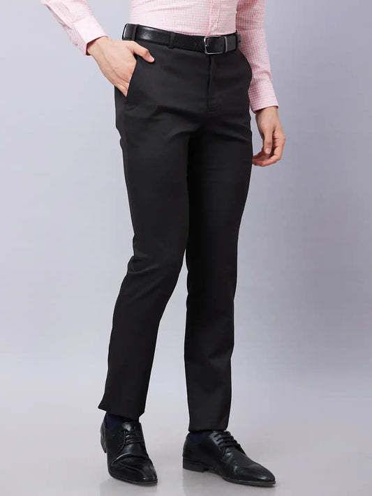 Men Grey Super Slim Fit Structure Polyester Blend Trouser