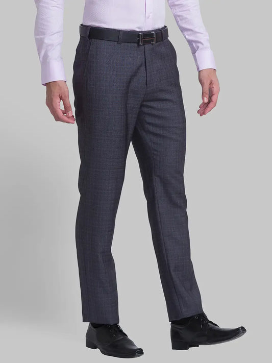 Park Avenue Men Grey Checks Smart Fit Polyester Blend Trousers