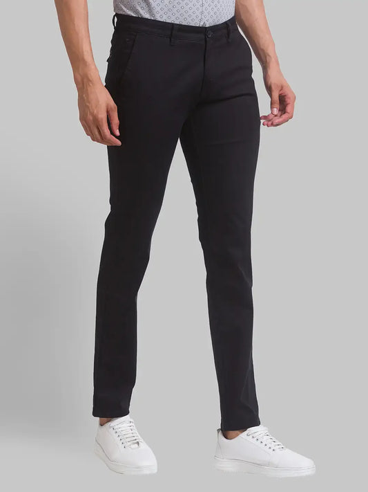 Men Black Lrt Fit Solid Cotton Blend Trouser