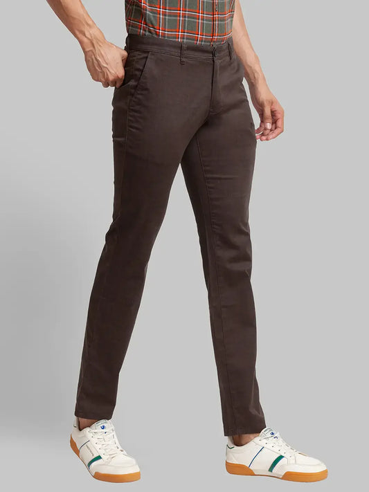Men Brown Super Slim Fit Solid Cotton Blend Trouser