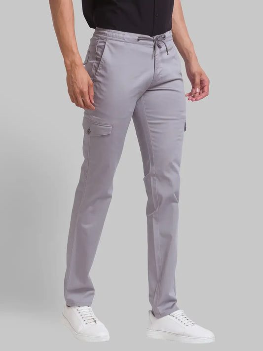 Men Grey Lrt Fit Solid Cotton Blend Trouser