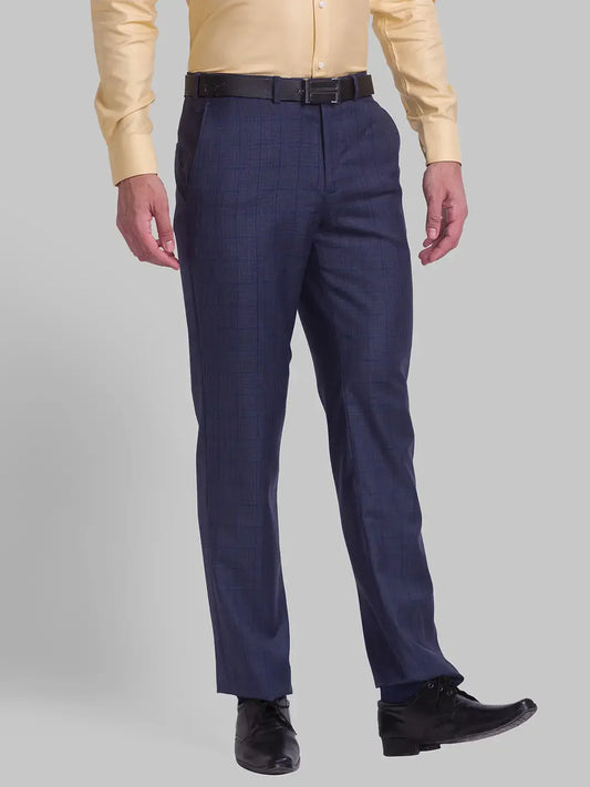 Men Blue Smart Fit Checks Polyester Blend Trouser