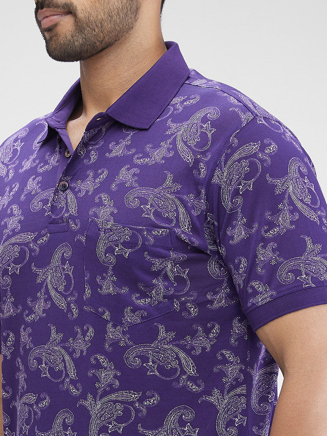 Colorplus Blue Printed Regular Fit Cotton T-Shirt