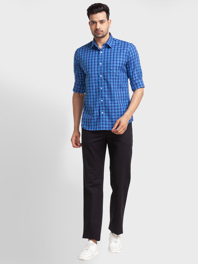 Men Blue Checkered Tailored Fit Full Sleeve Spread Collar Shirt