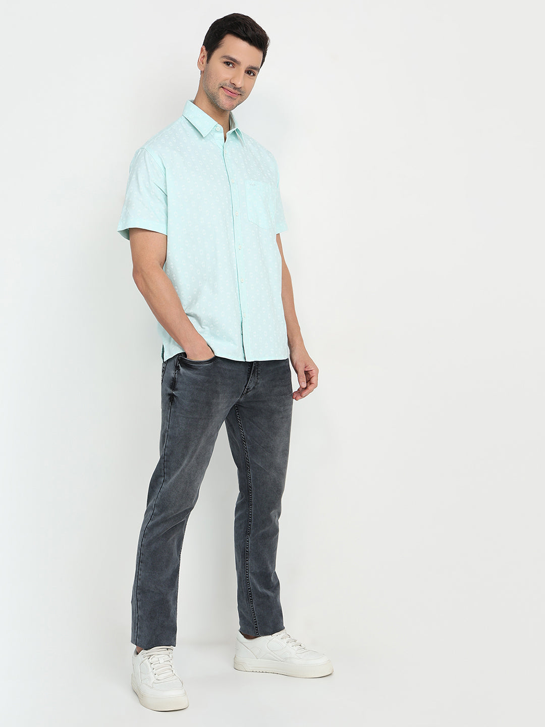 Men Blue Printed Comfort Fit Cotton Half Sleeve Shirt