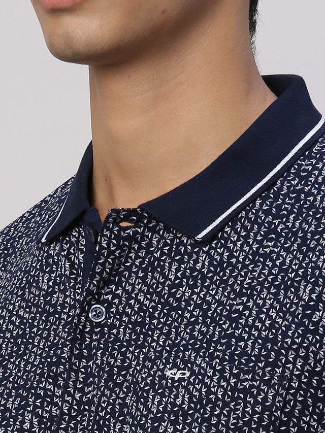 Colorplus Men Blue Printed Comfort Fit Half Sleeve Polo Neck T-Shirt