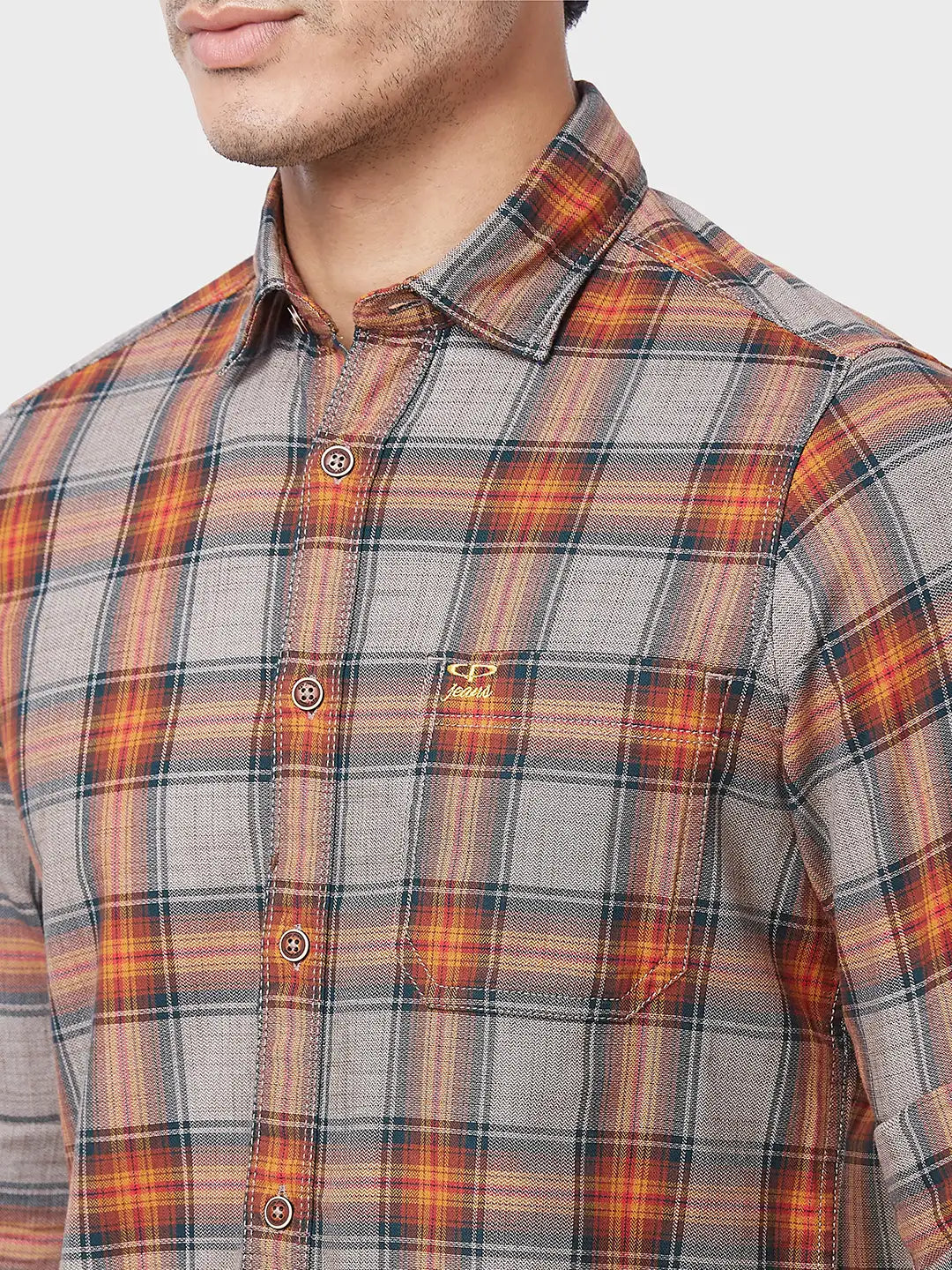 Colorplus Men Brown Checks Contemporary Fit Cotton Casual Shirt