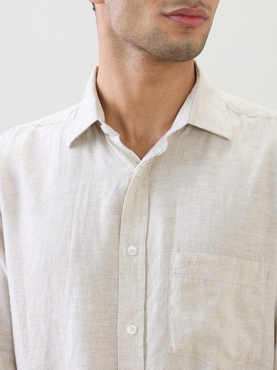 Colorplus Men Brown Solid Regular Fit Linen Full Sleeve Casual Shirt