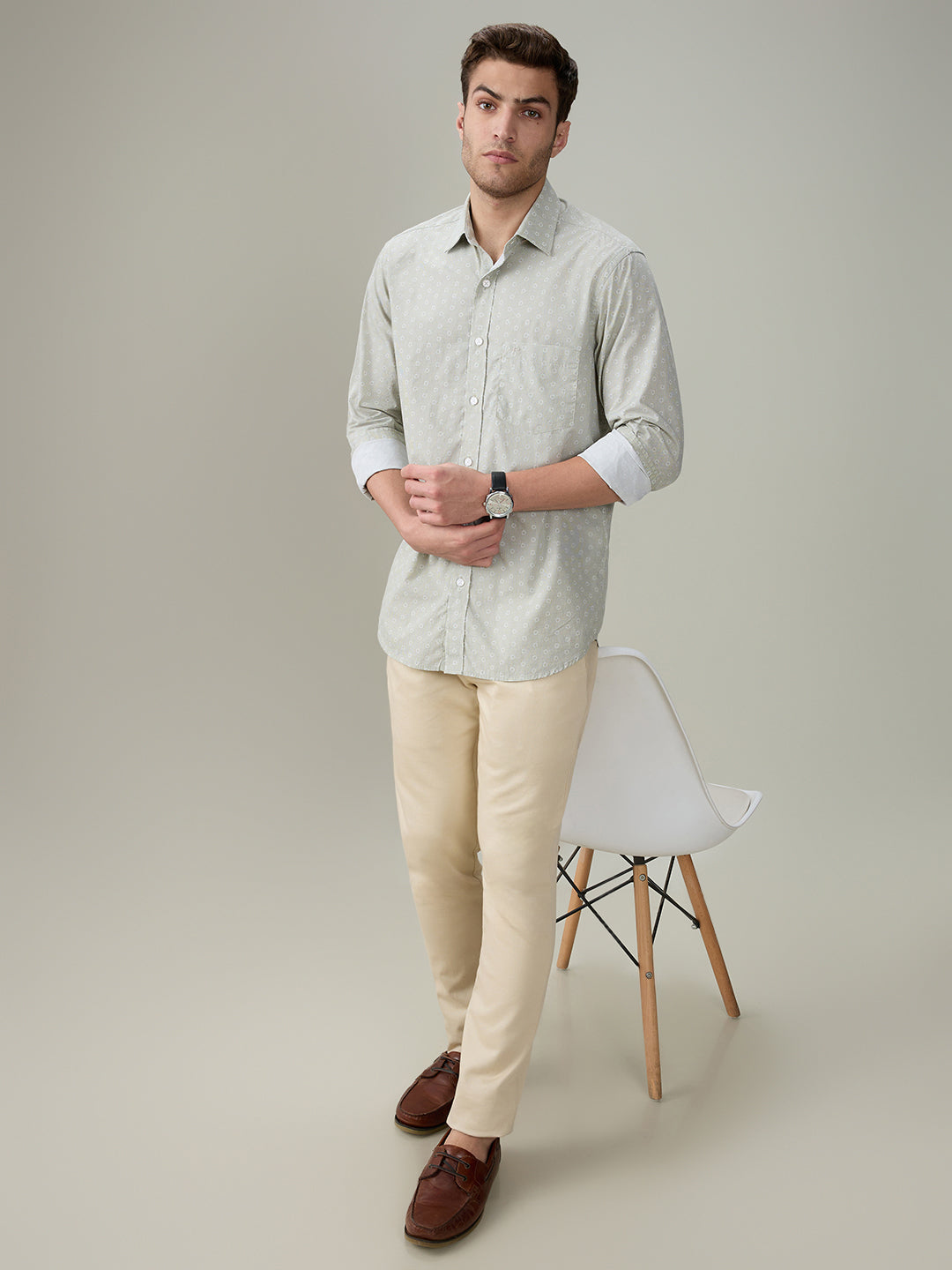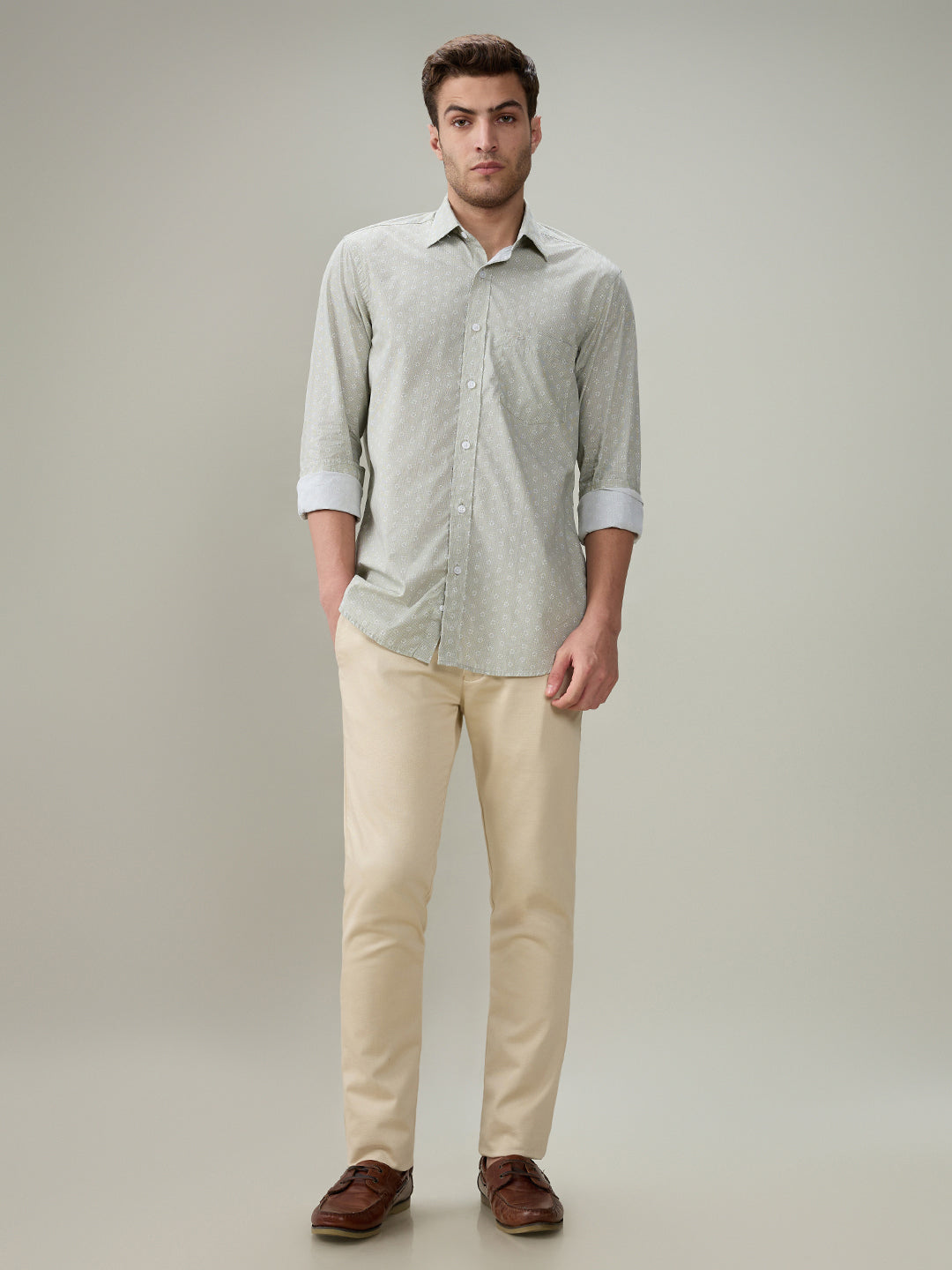 Colorplus Men Green Printed Regular Fit Cotton Full Sleeve Casual Shirt