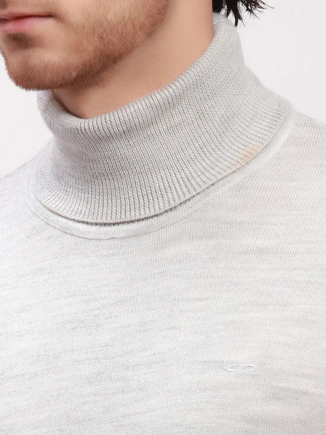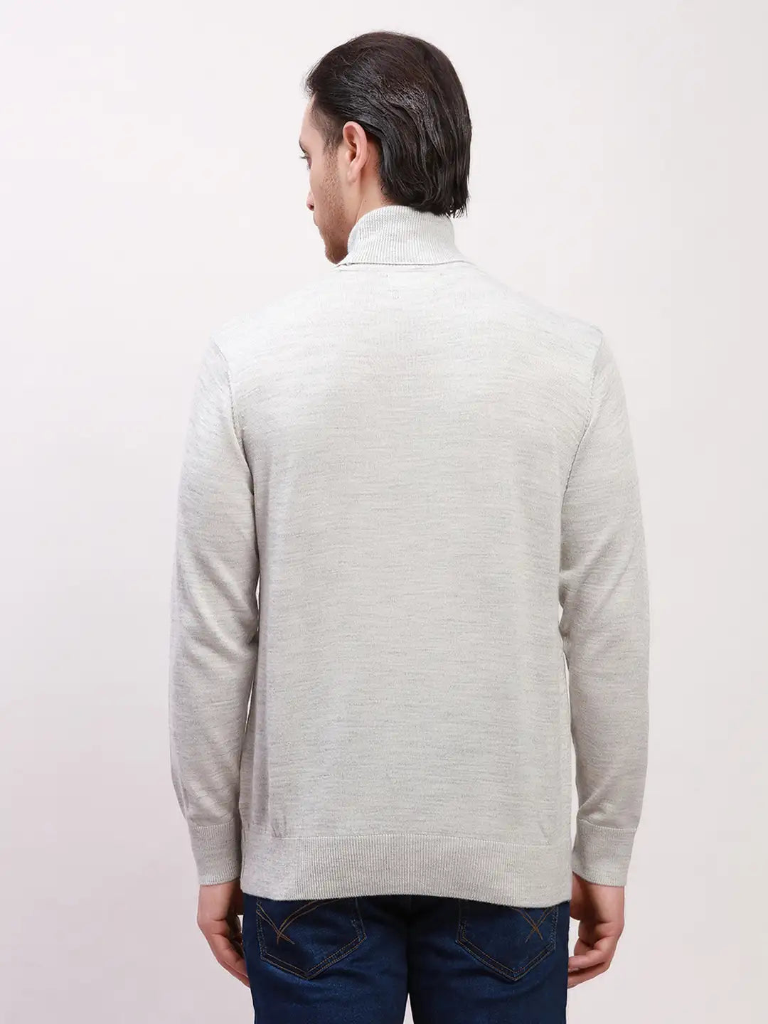 Colorplus Men Grey Solid Tailored Fit Wool Blend Full Sleeve V Neck Sweaters