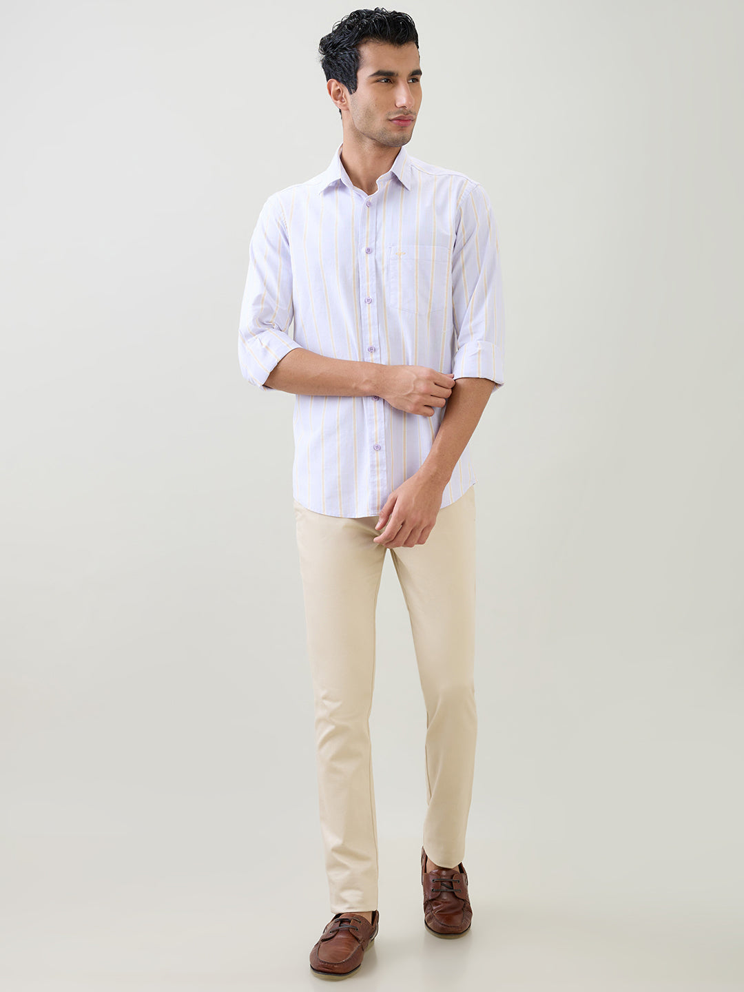 Colorplus Men Purple Stripe Regular Fit Cotton Blend Full Sleeve Casual Shirt