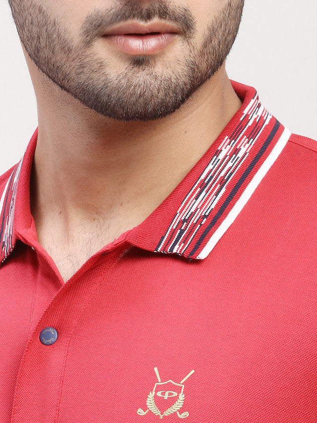 Colorplus Men Red Solid Regular Fit Half Sleeve Polo Neck T-Shirt