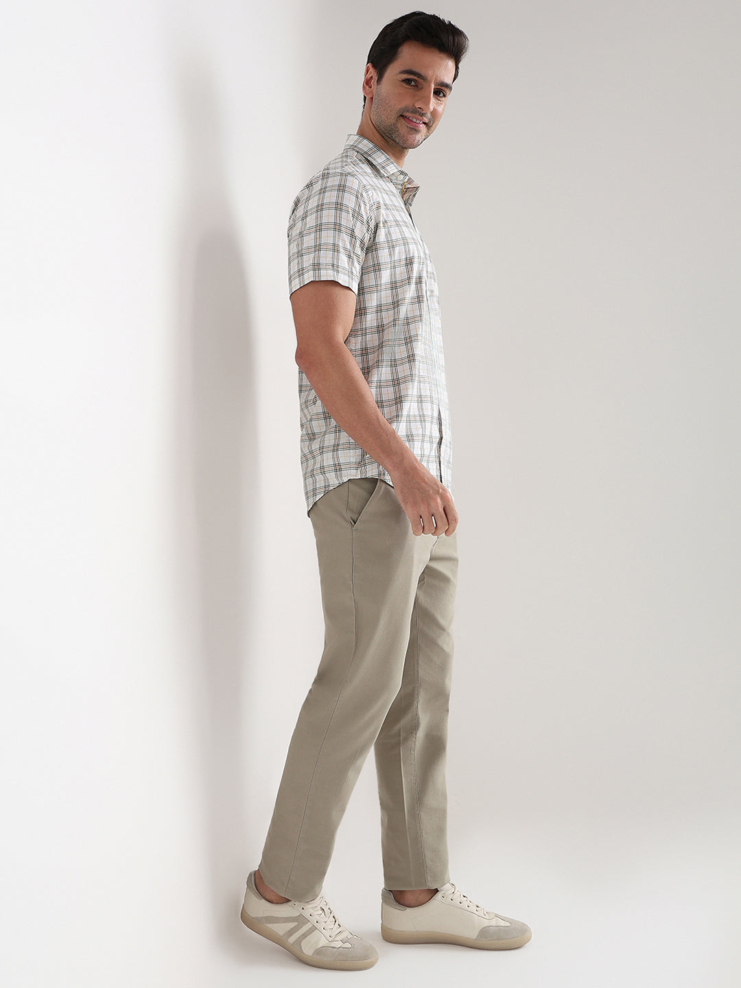 Colorplus Men White Checks Regular Fit Cotton Half Sleeve Casual Shirt