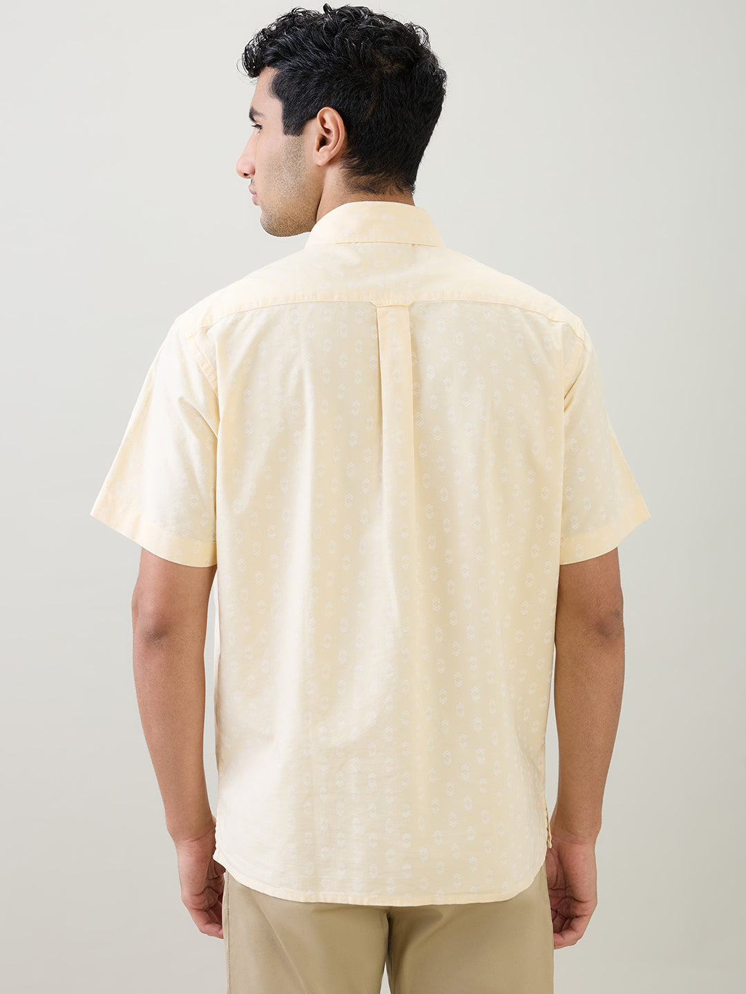 Colorplus Men Yellow Printed Comfort Fit Cotton Half Sleeve Casual Shirt