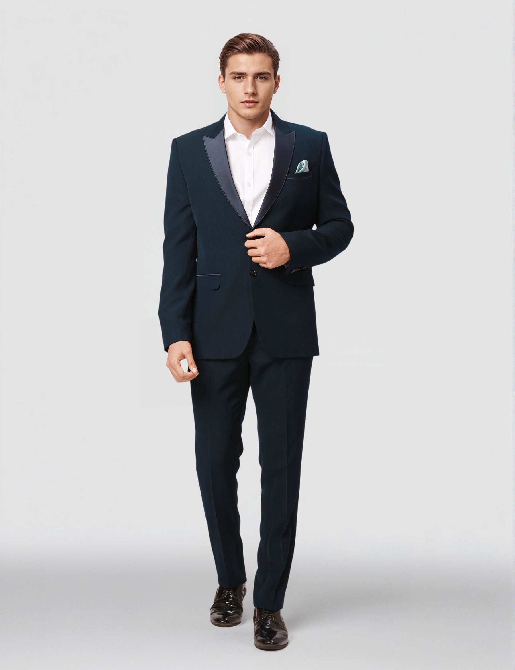 Men Blue Dobby Tailored fit Polyster Blend Suit