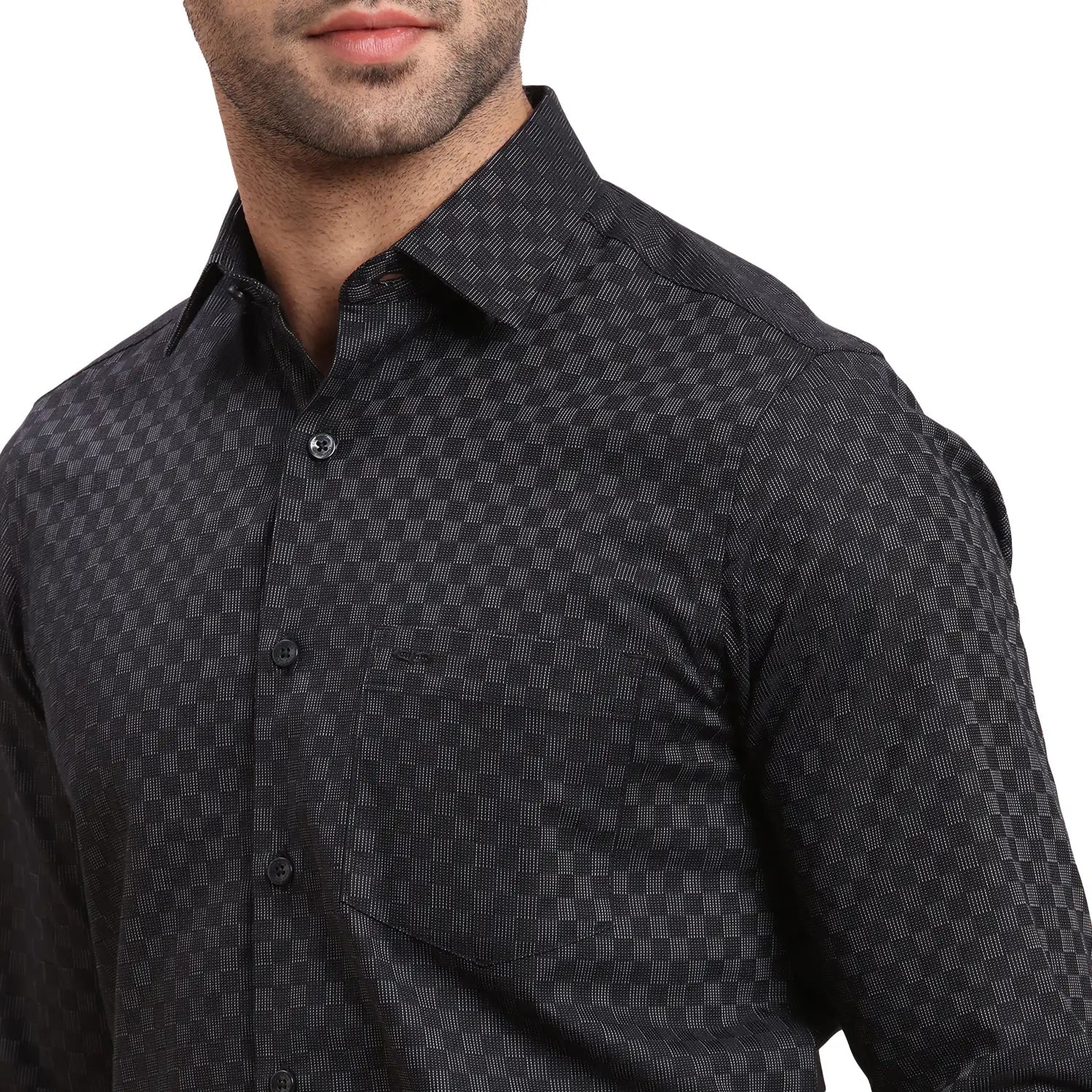 Men Black Regular Fit Dobby Cotton Full Sleeves Shirts