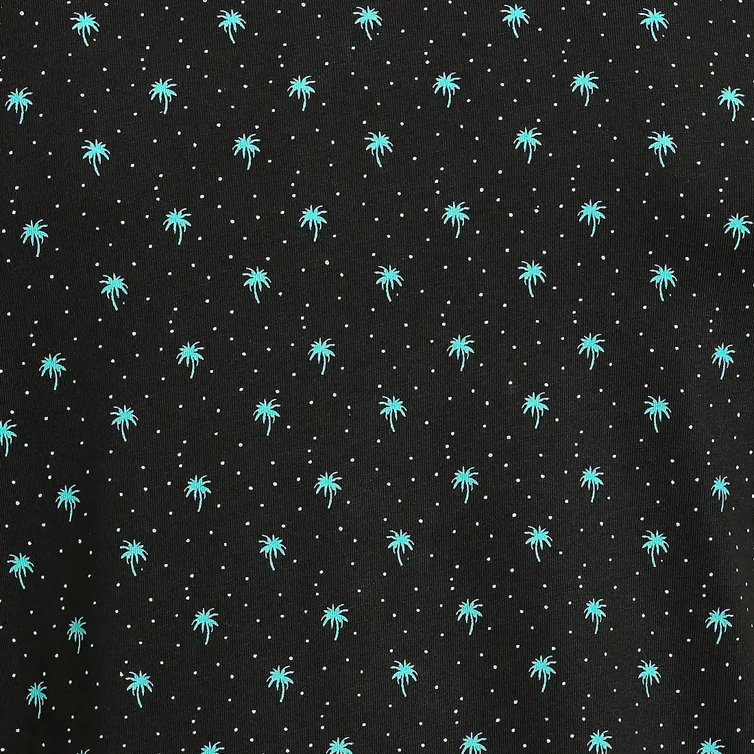 Men Black Regular Fit Print Cotton Round Neck Collar Polo T-Shirt