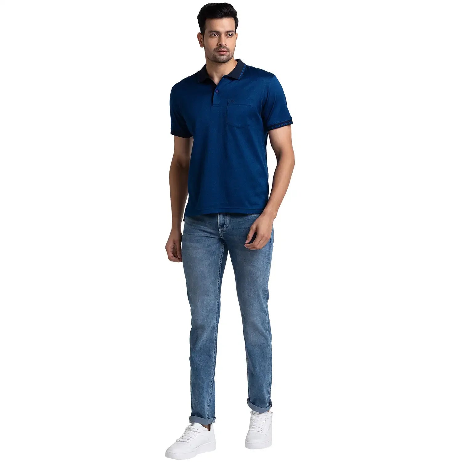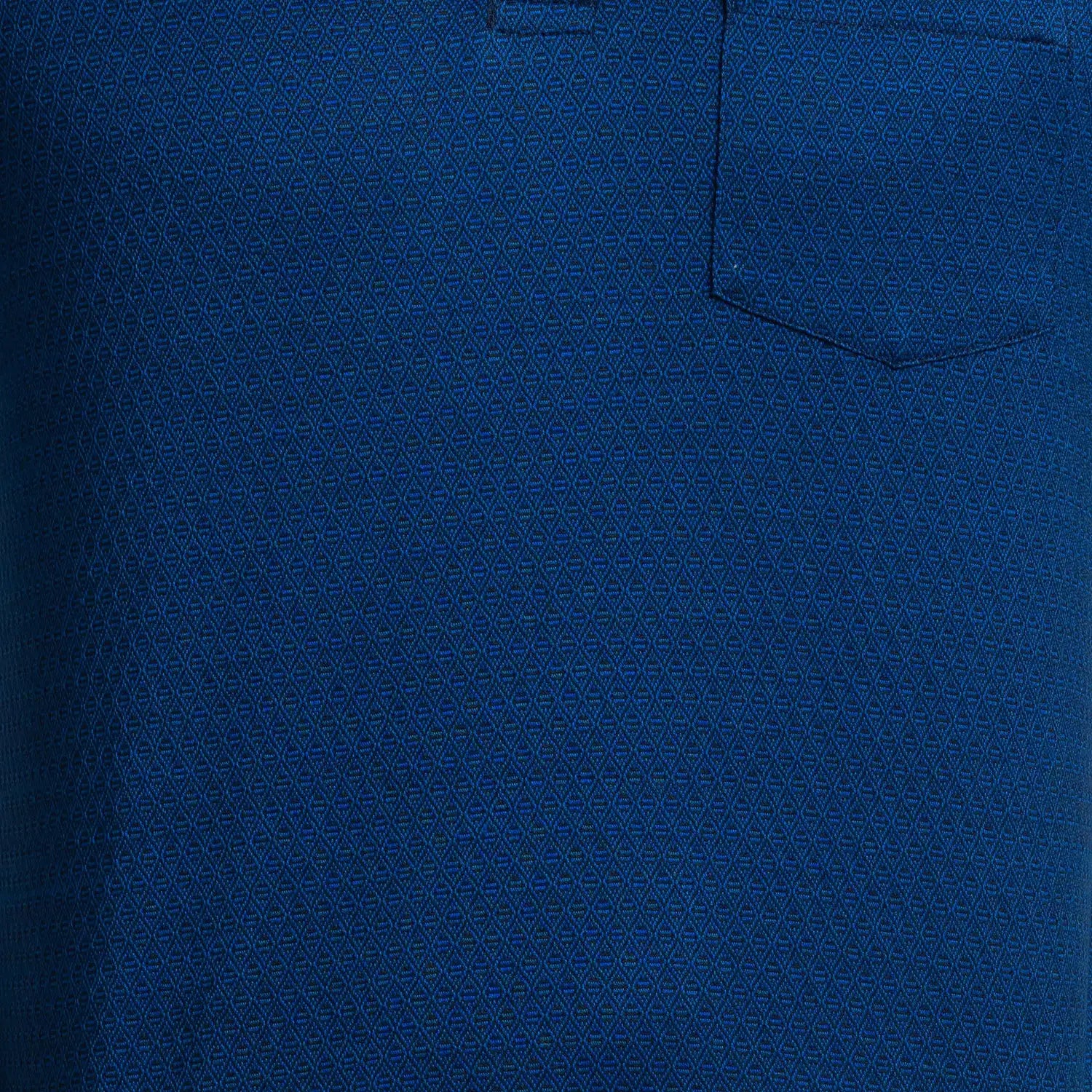 Men Blue Contemporary Fit Jacquard Cotton Half Sleeve Polo T-Shirt