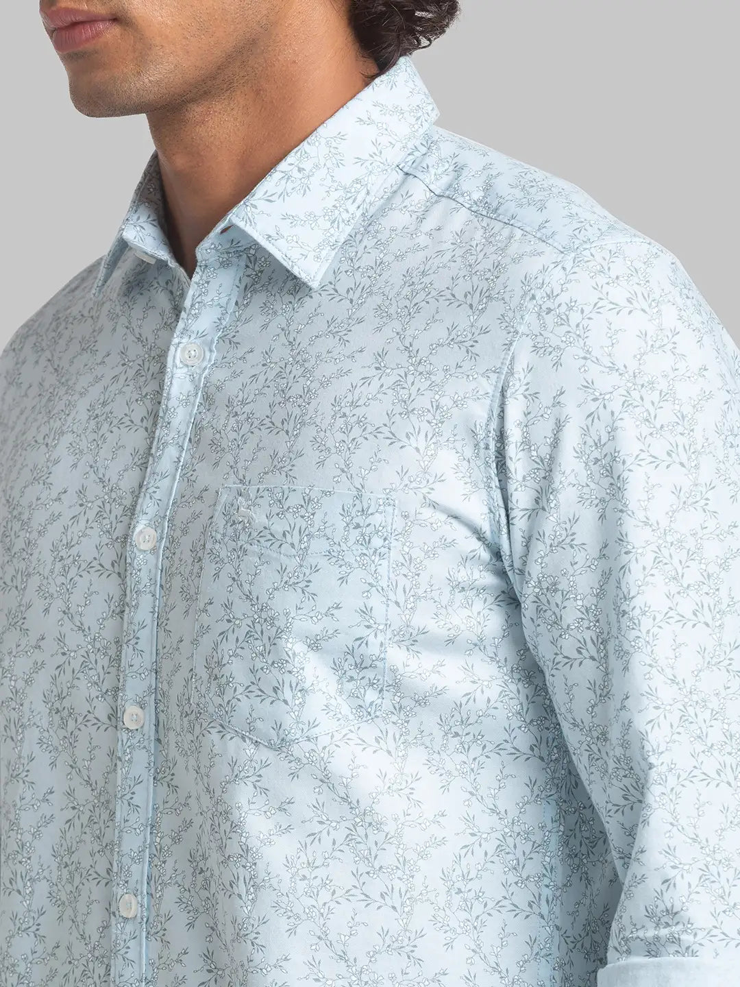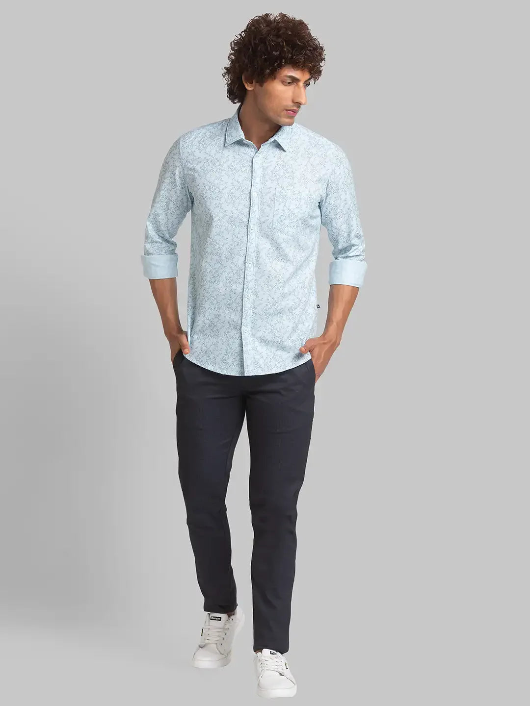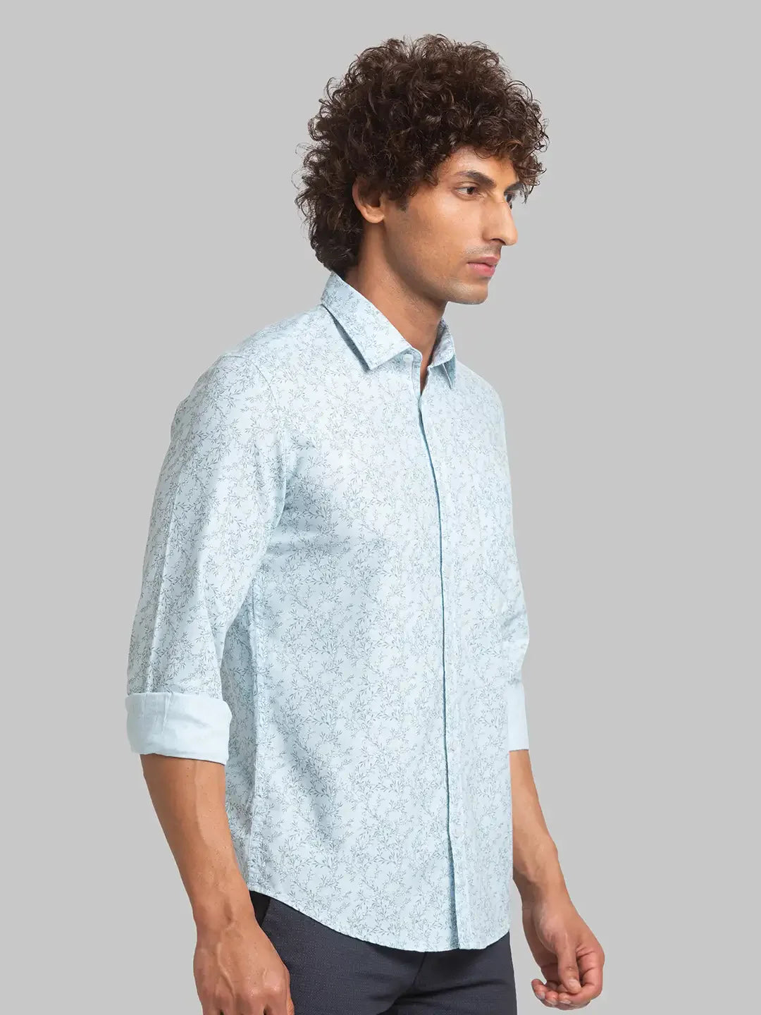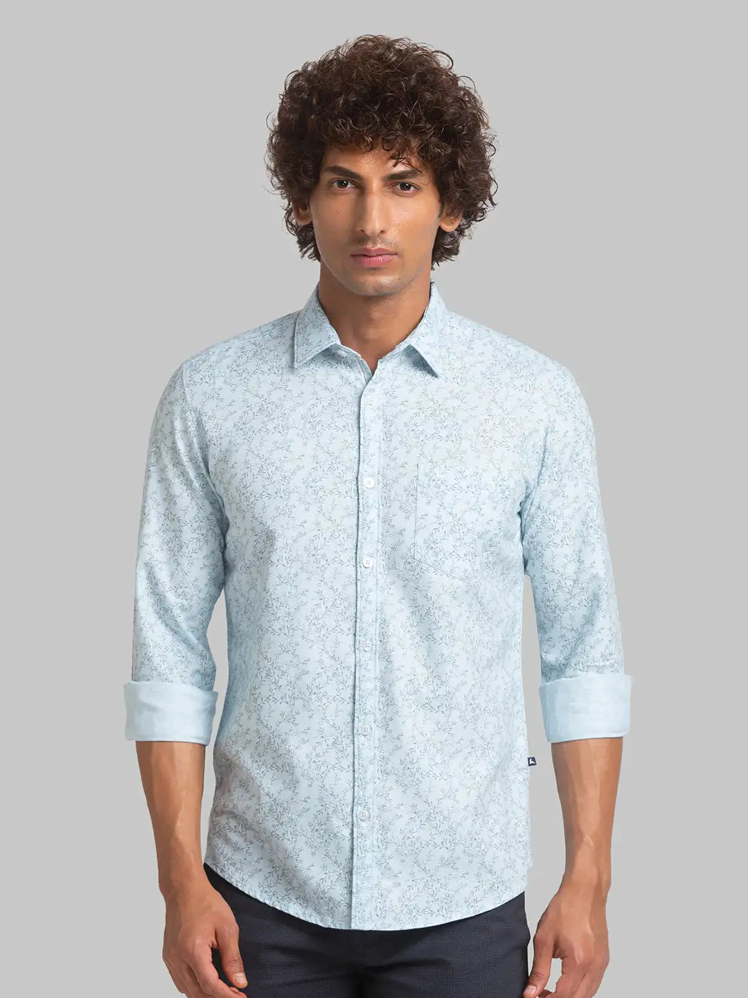 Men Blue Slim Fit Print Cotton Full Sleeve Shirts