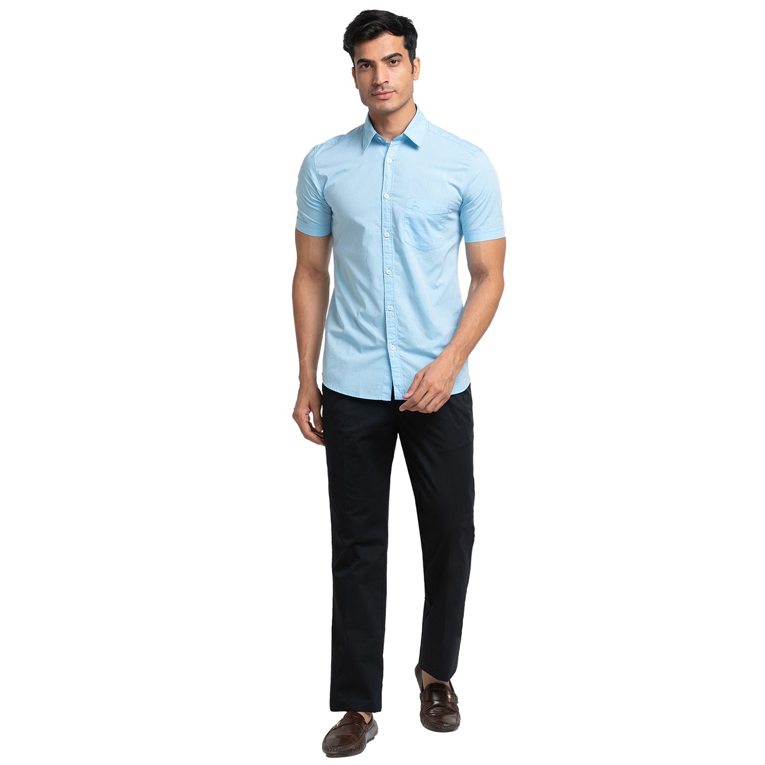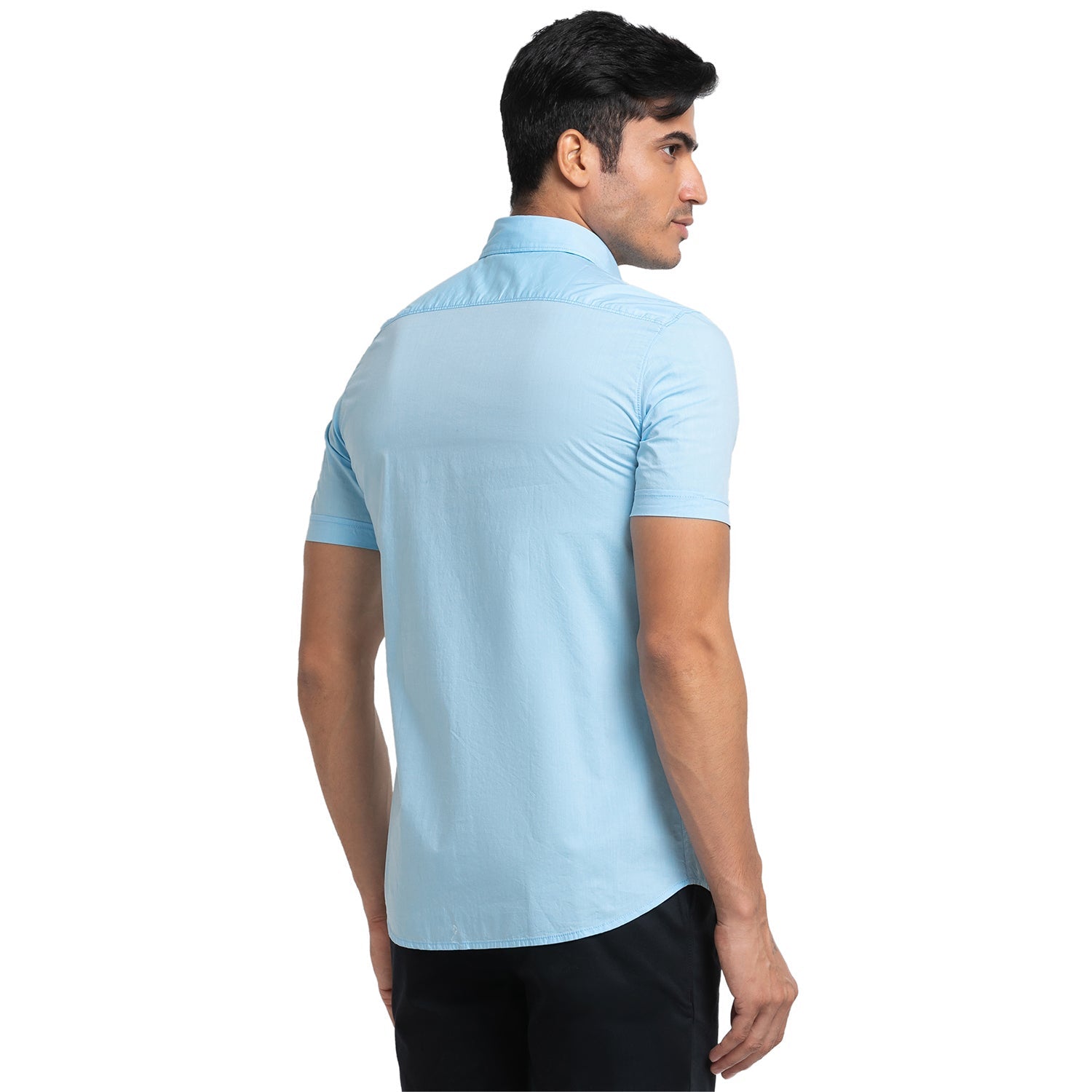 Men Blue Slim Fit Solid Cotton Half Sleeve Shirts