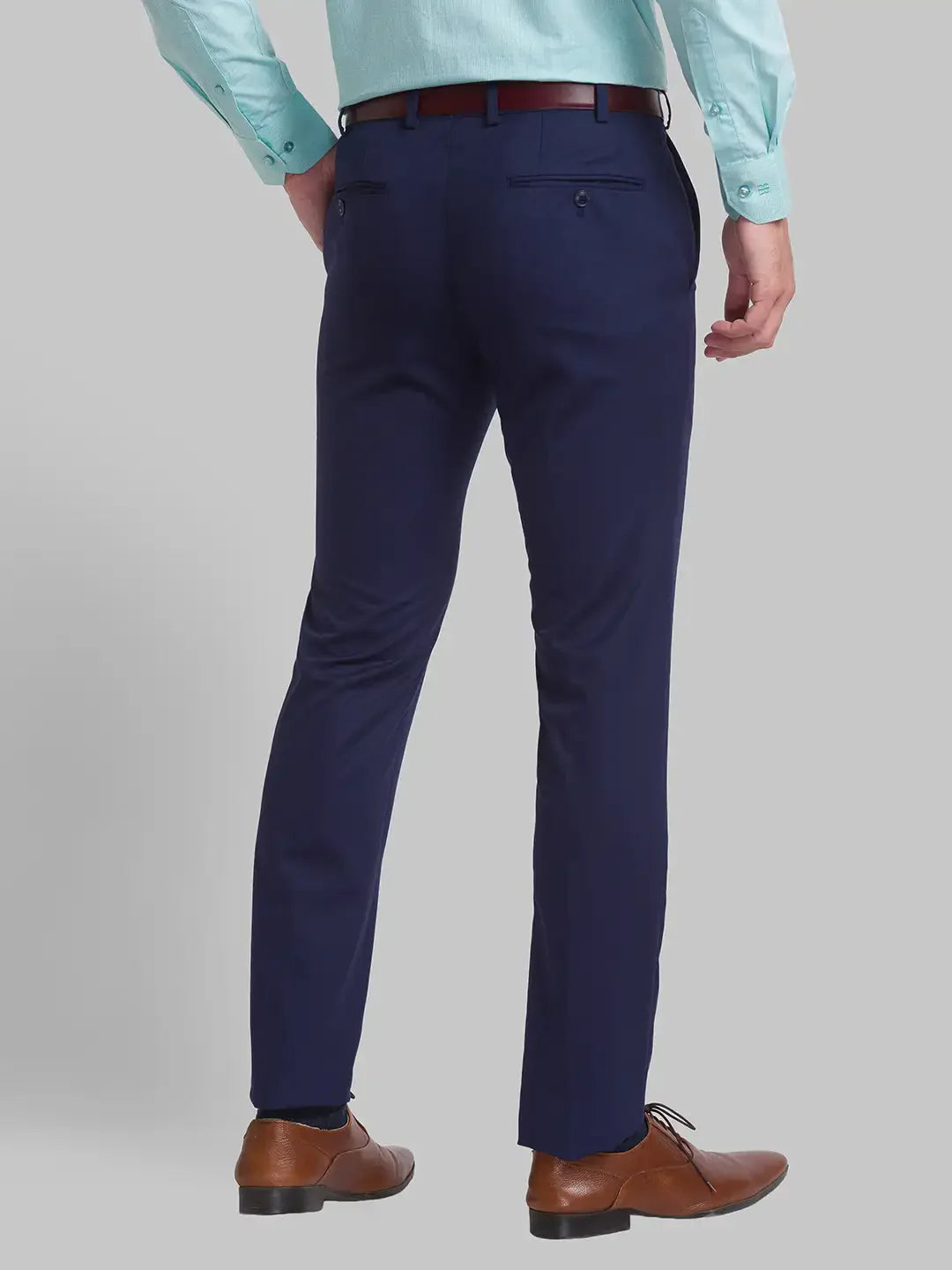 Men Blue Super Slim Fit Solid Polyester Blend Trouser