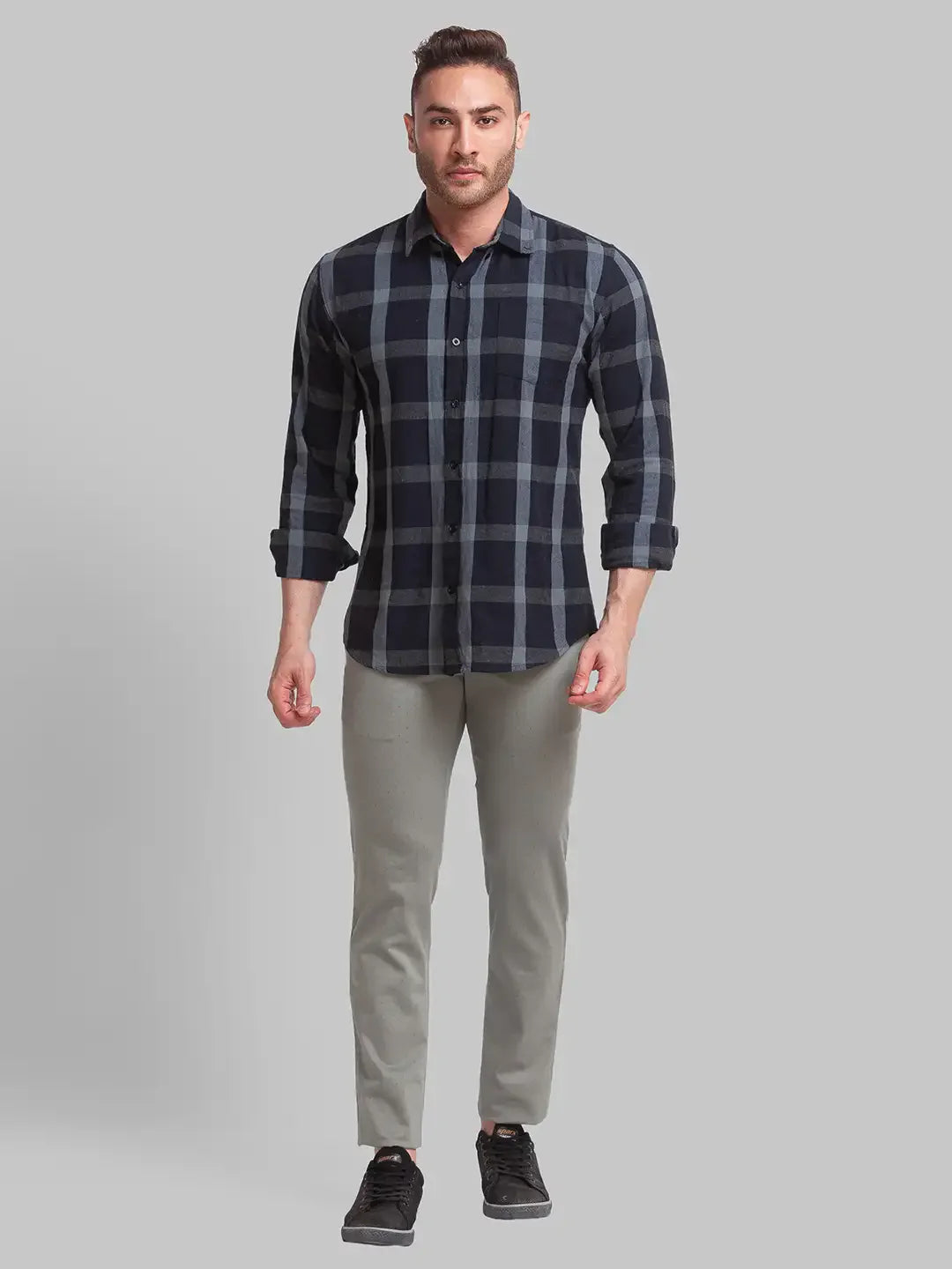 Parx Men Low Rise Tapered Fit Print Cotton Blend Trouser