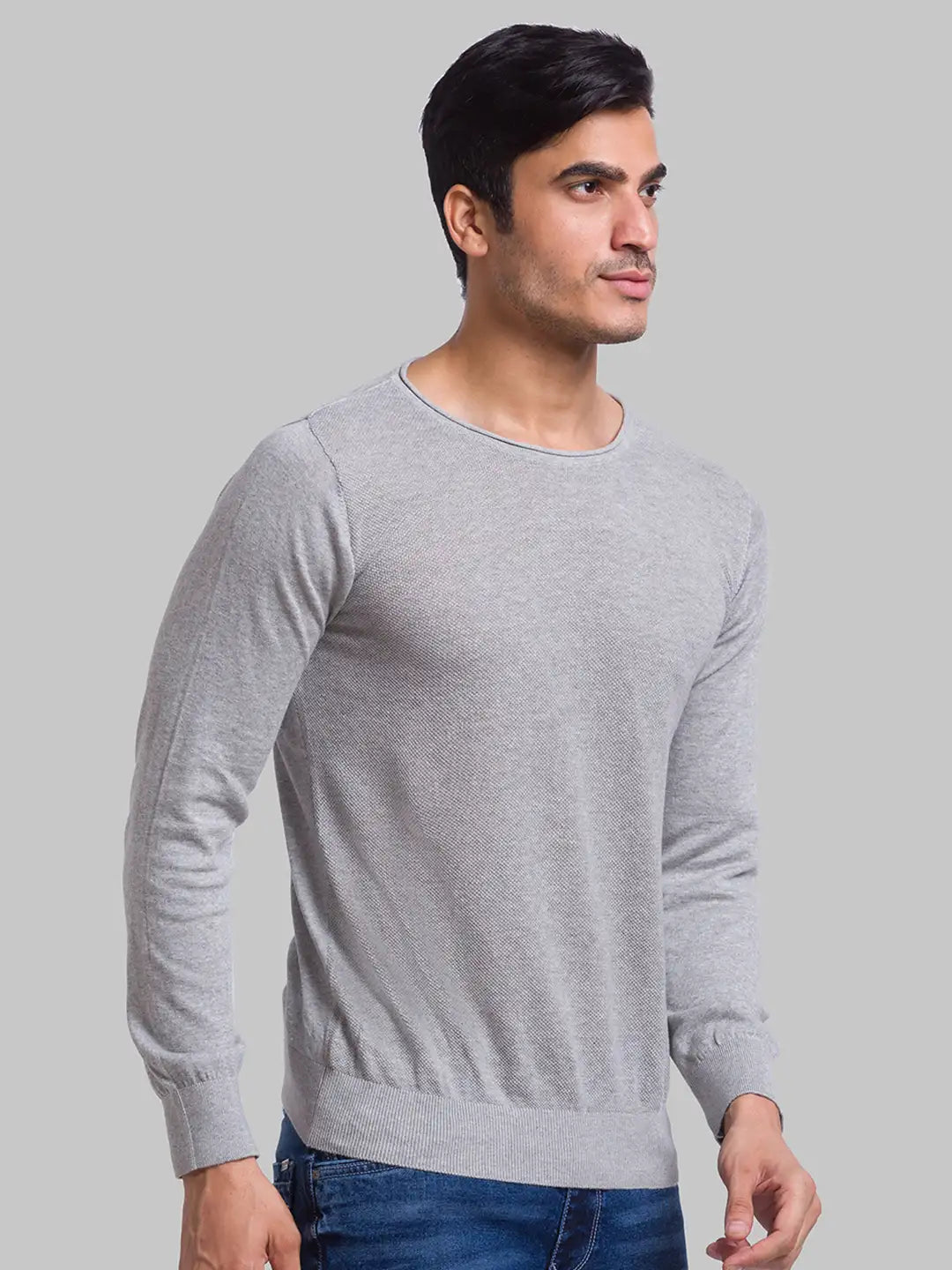 Men Grey Structure Cotton Full Sleeve Sweaters