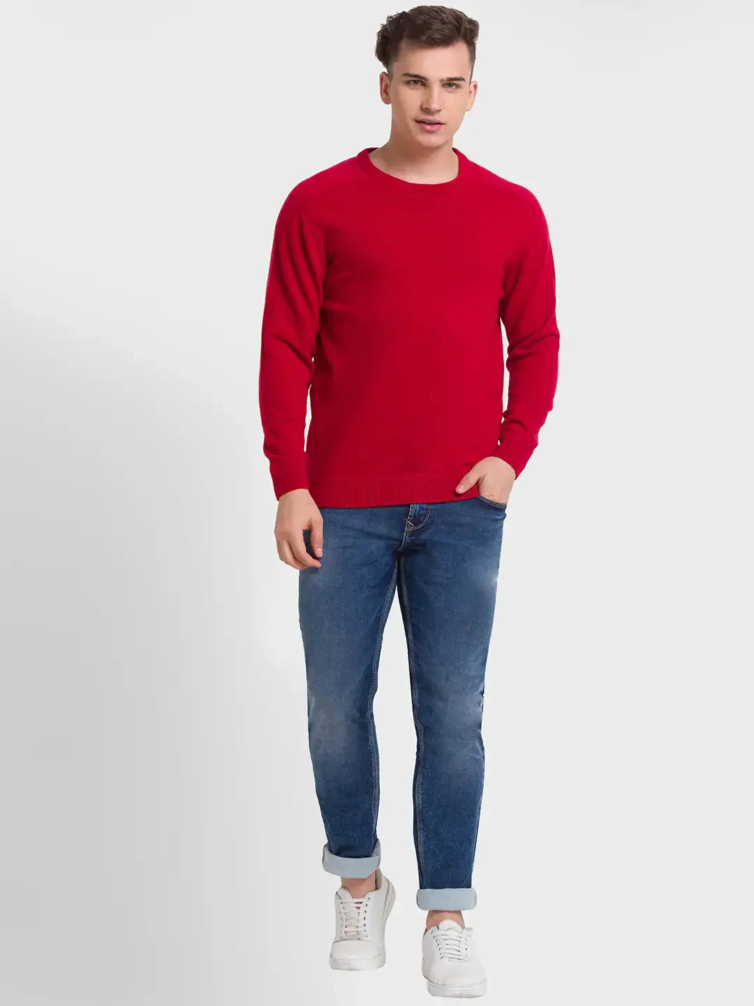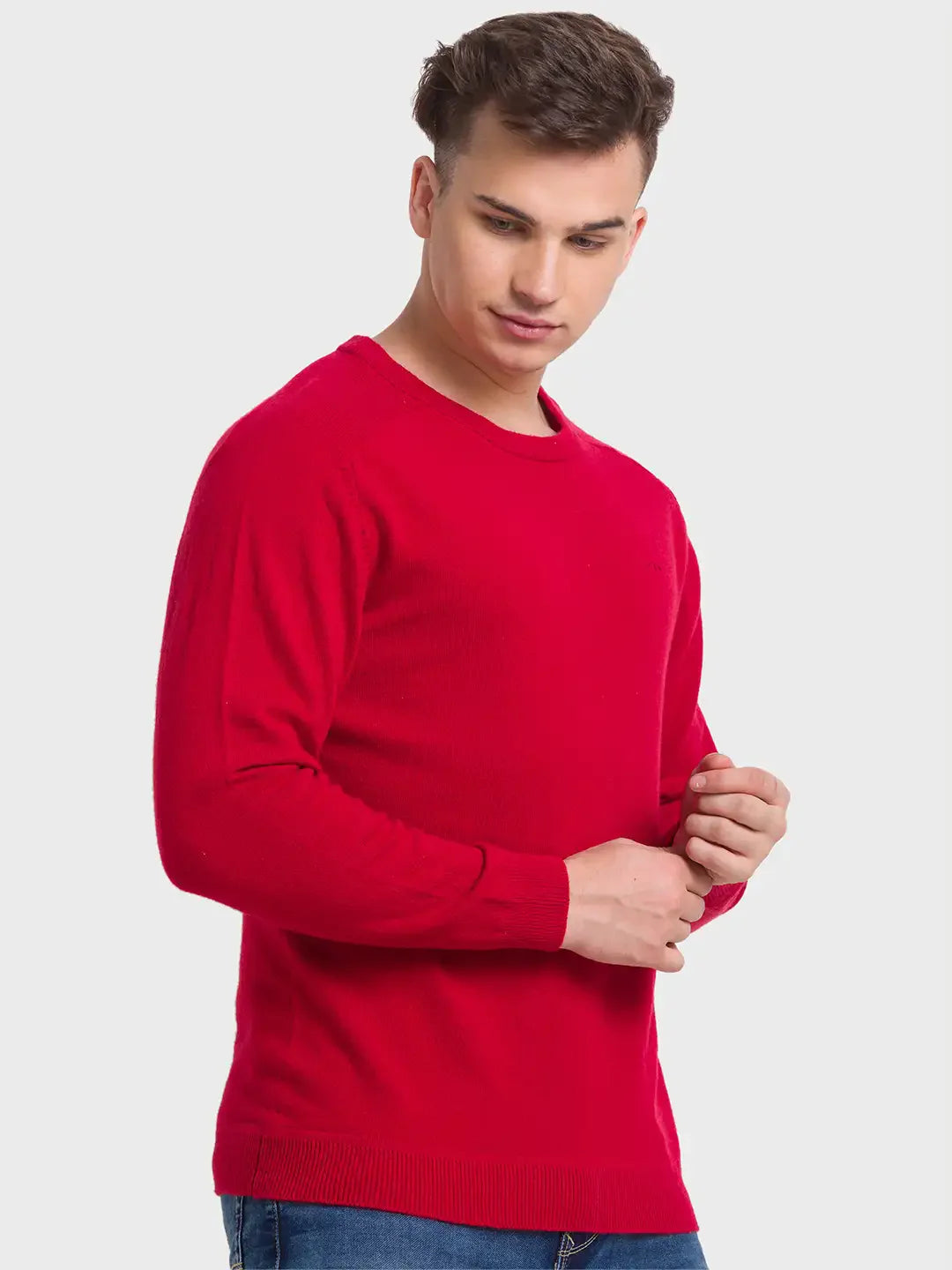 ColorPlus Men Tailored Fit Solid Wool Blend Full Sleeve Sweaters
