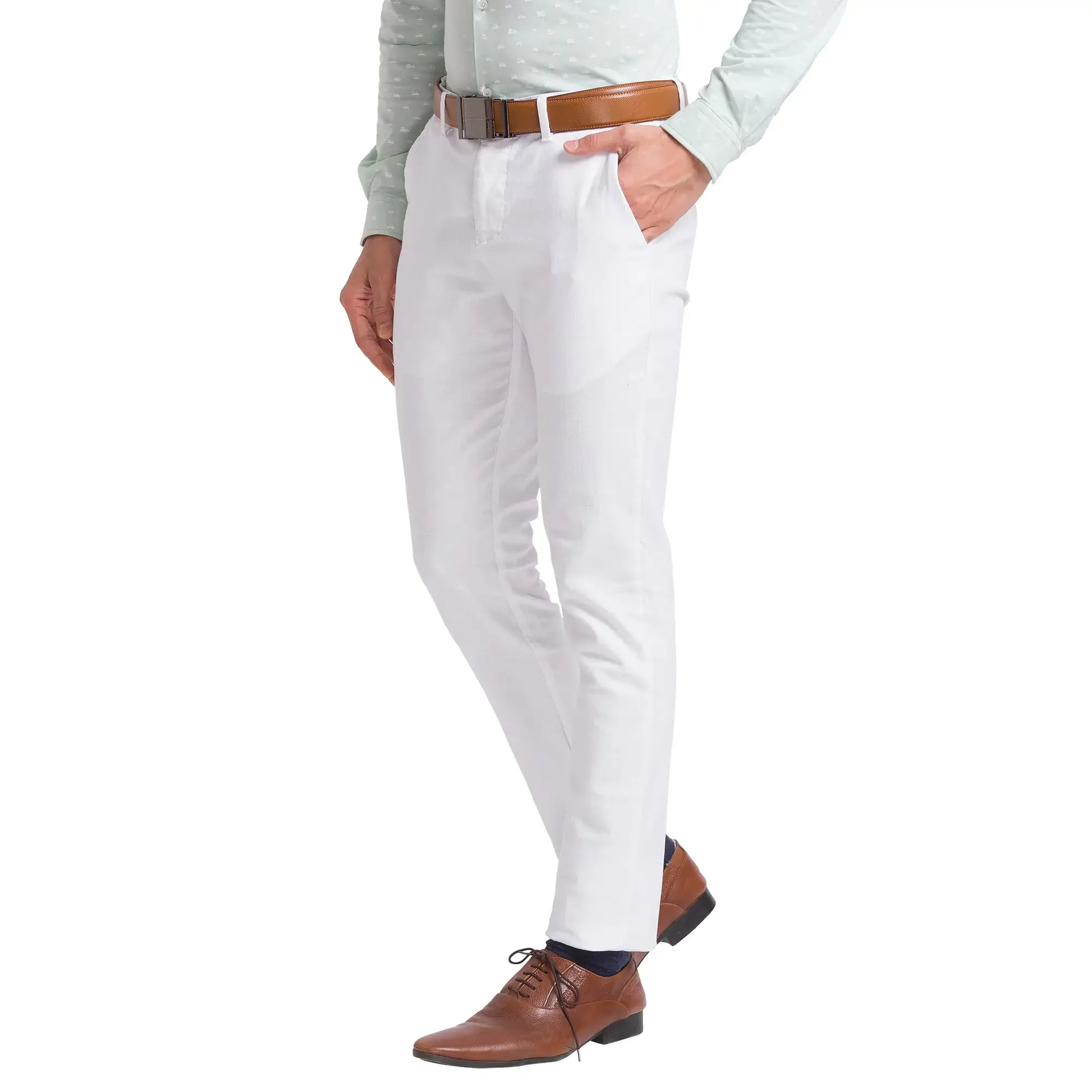 Men White Neo Classic Fit Solid Cotton Trouser