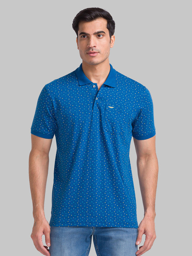 Park Avenue Blue Printed Slim Fit Cotton Blend T-Shirt
