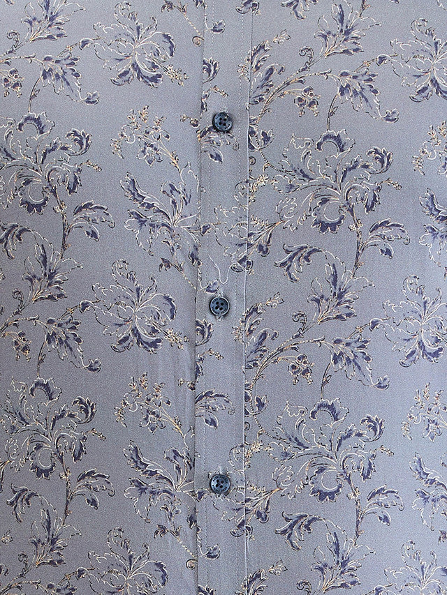 Men Grey Print Slim Fit Cotton Formal Shirt