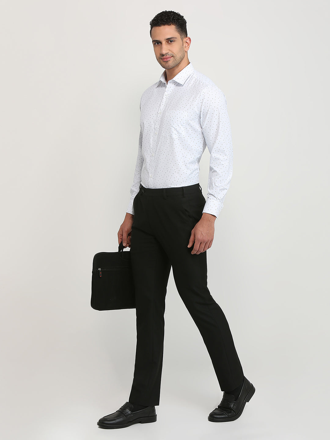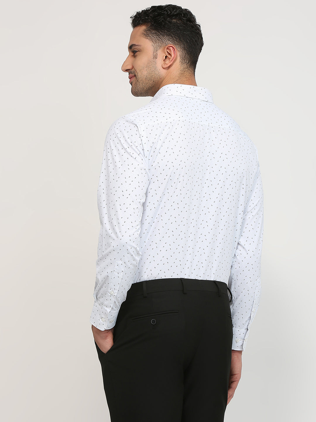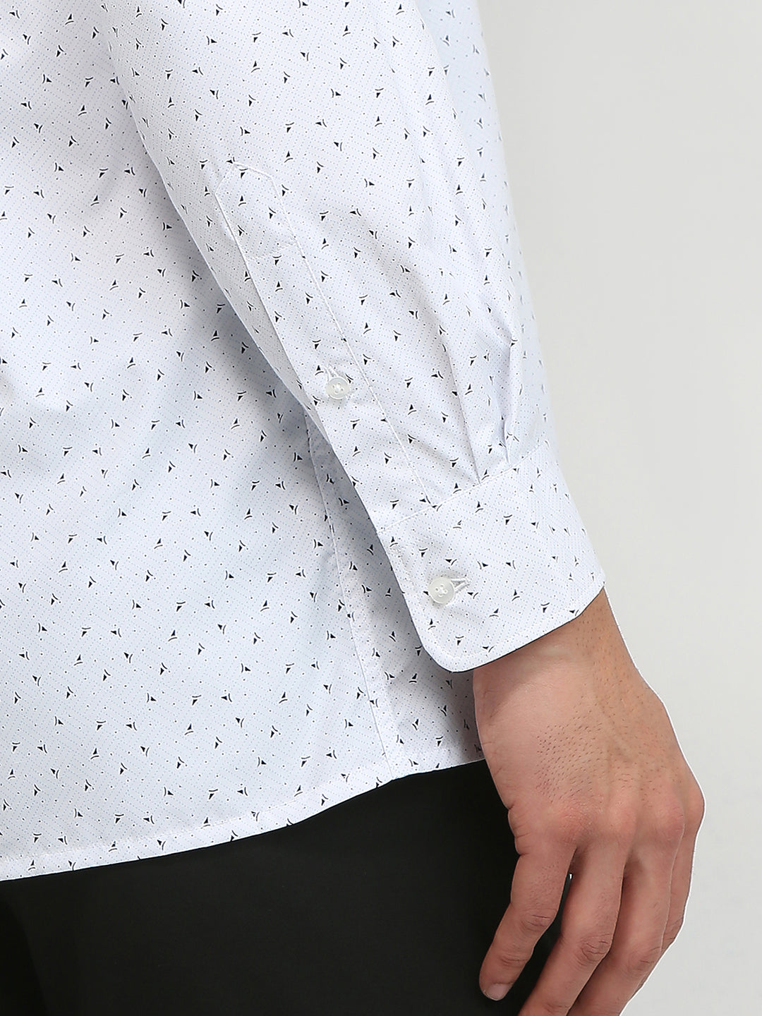 Men Blue Printed Regular Fit Polyester Blend Formal Shirt