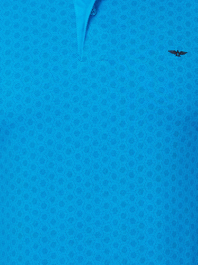 Park Avenue Men Blue Printed Slim Fit Half Sleeve Polo Neck T-Shirt