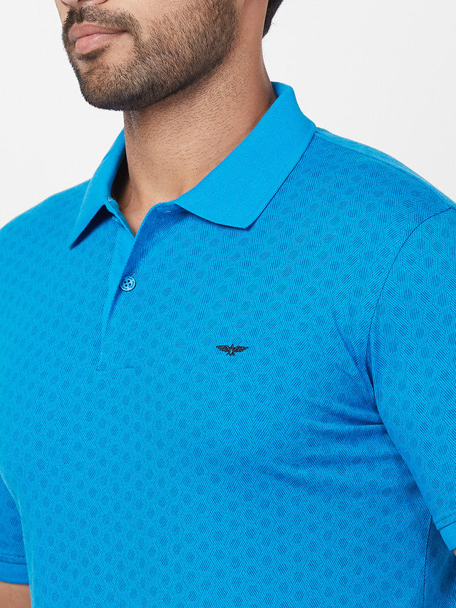 Men Blue Printed Slim Fit Half Sleeve Polo Neck T-Shirt