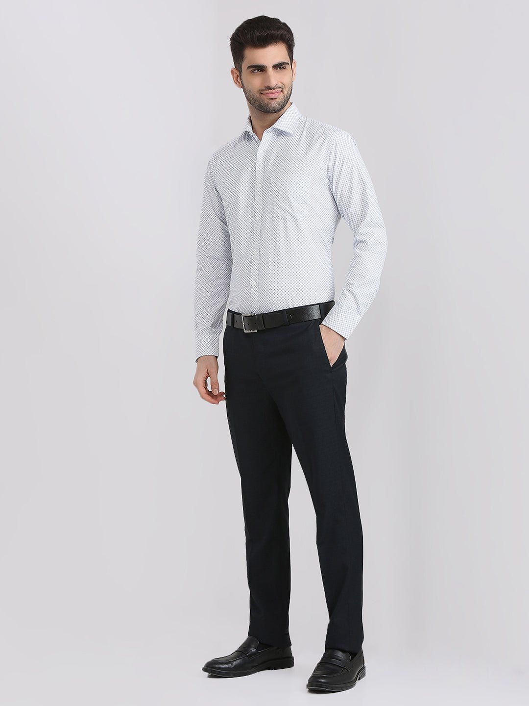 Park Avenue Men Blue Printed Slim Fit Polyester Blend Formal Shirt