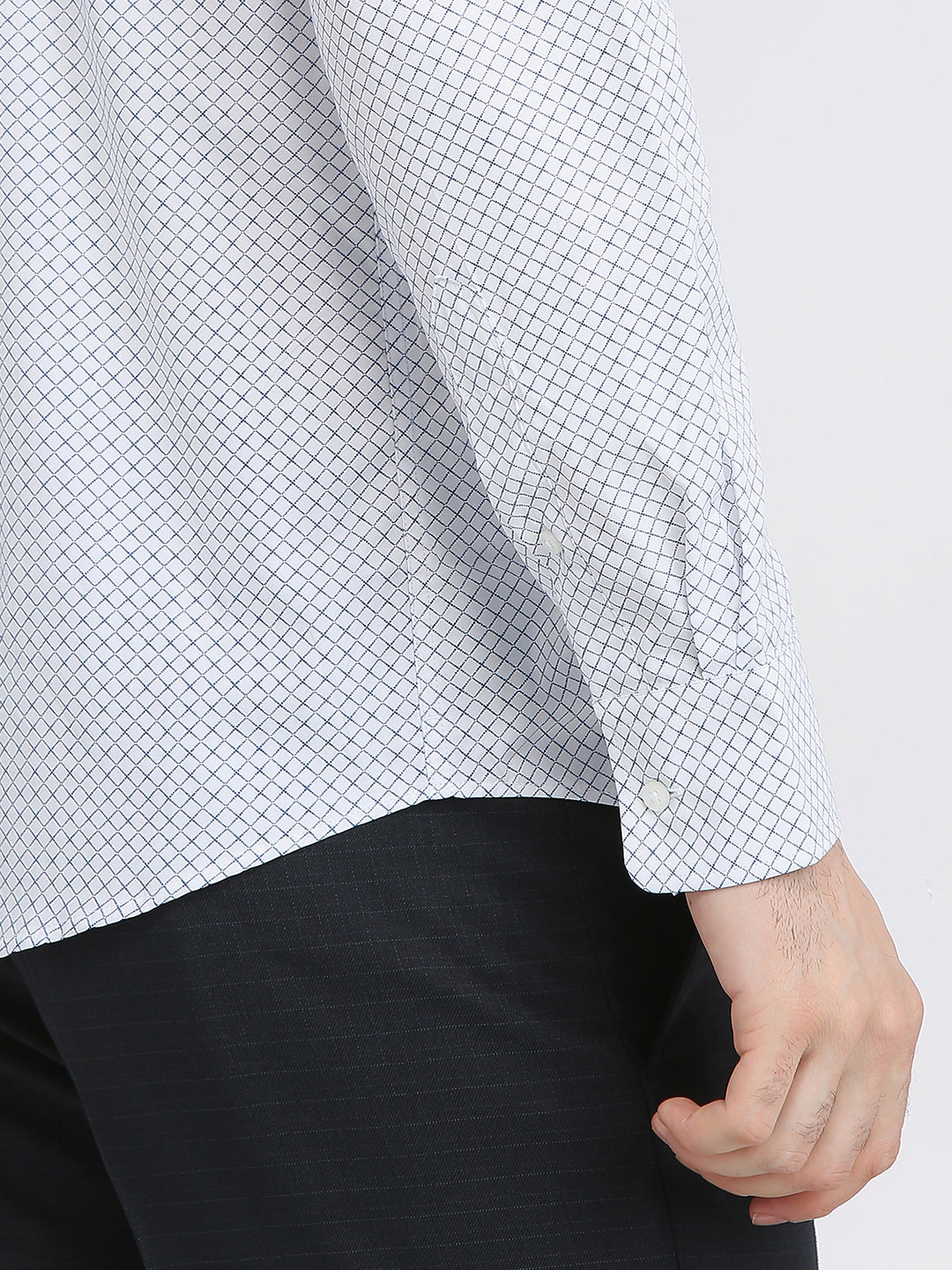 Men Blue Printed Slim Fit Polyester Blend Formal Shirt
