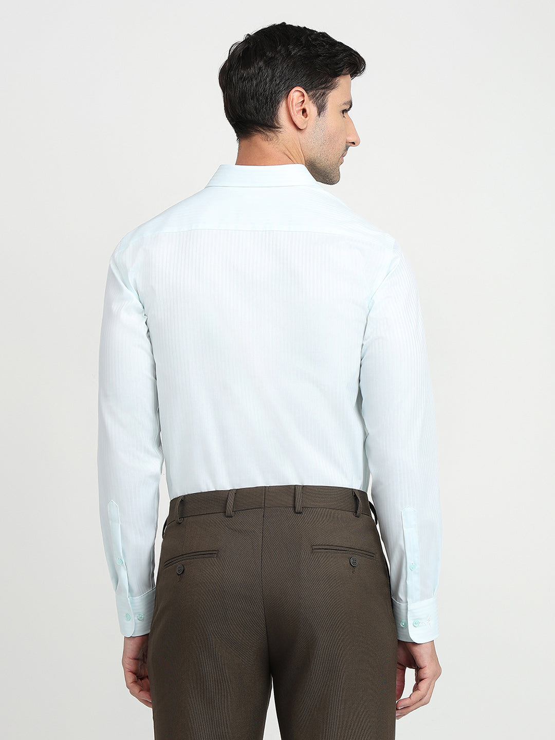 Park Avenue Men Blue Stripe Regular Fit Cotton Full Sleeve Ainsley Collar Formal Shirt