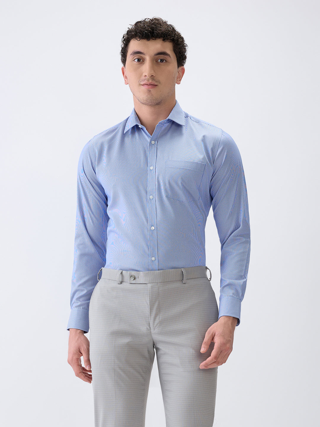 Men Blue Stripe Slim Fit Cotton Blend Formal Shirt