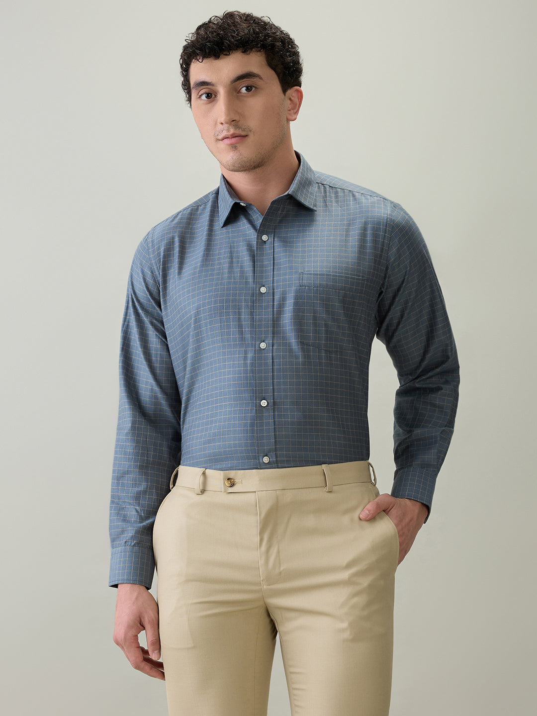 Park Avenue Men Blue Structure Regular Fit Cotton Blend Formal Shirt