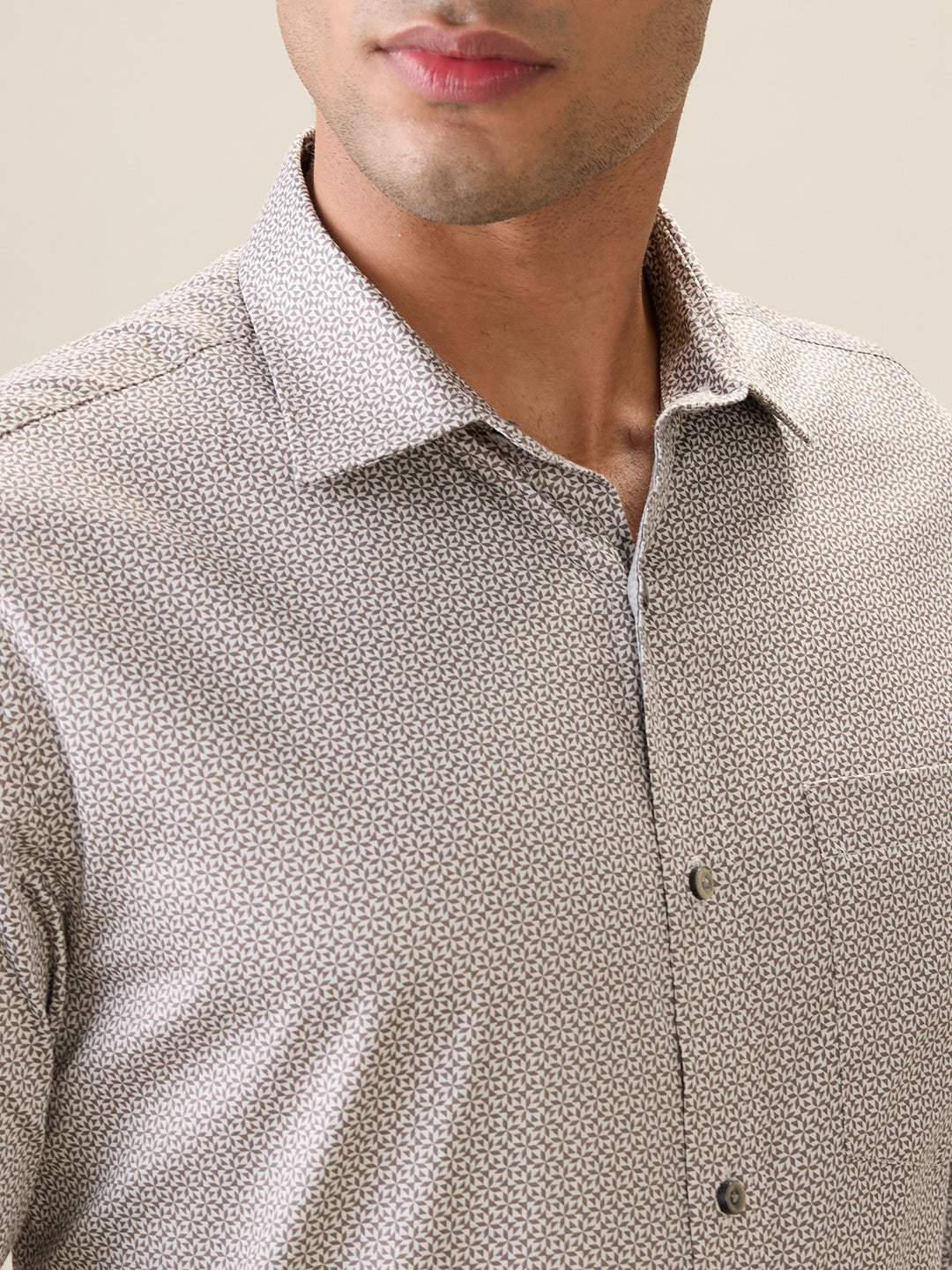 Men Brown Printed Regular Fit Cotton Full Sleeve Ainsley Collar Shirt