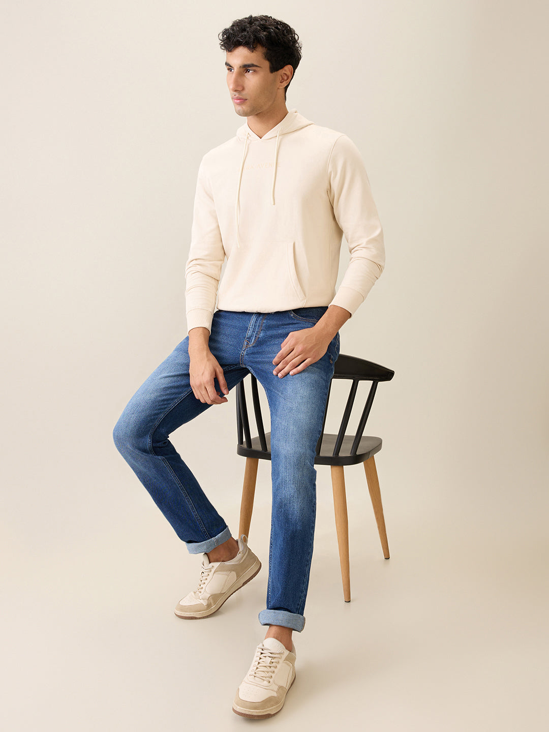 Men Brown Solid Slim Fit Cotton Blend Sweatshirt