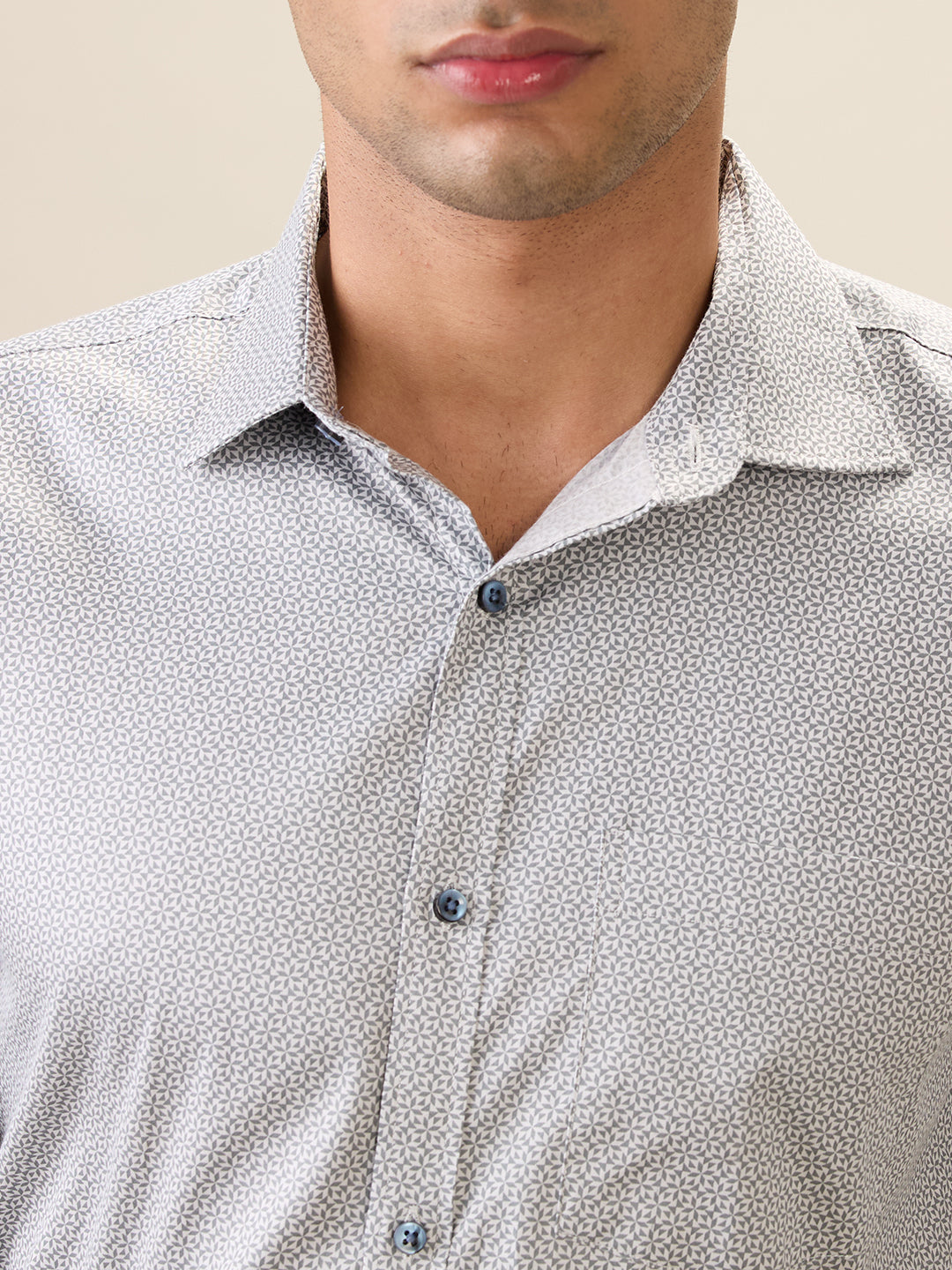 Men Green Printed Slim Fit Cotton Full Sleeve Shirt