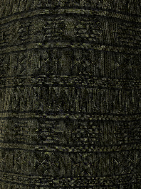 Park Avenue Men Green Solid Regular Cotton Sweater