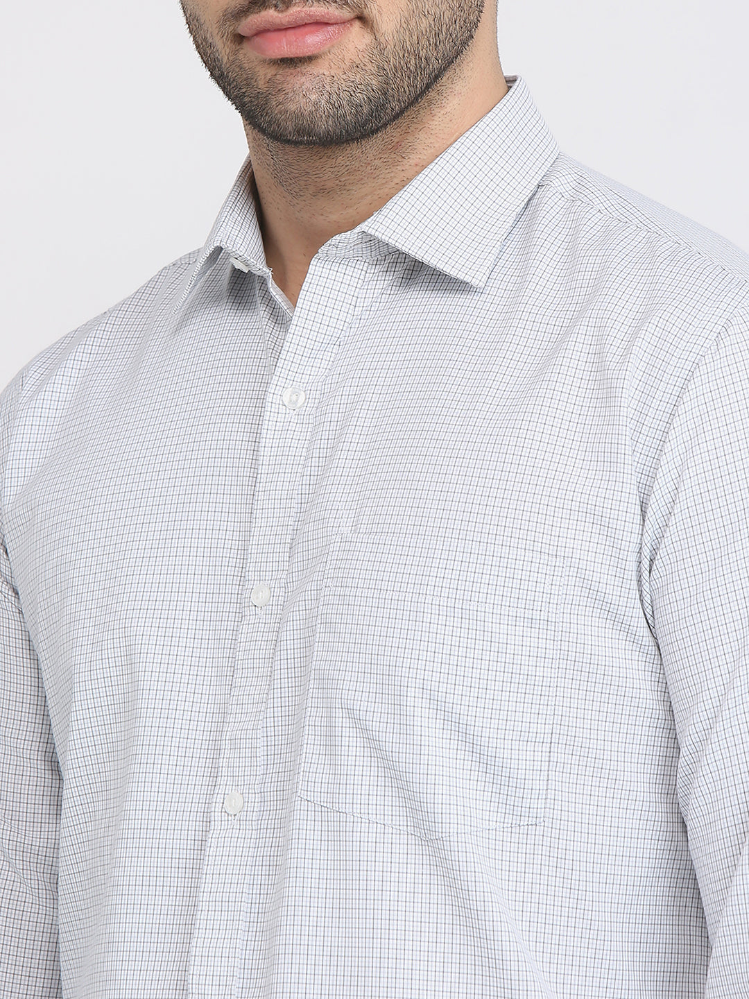 Men Grey Checks Slim Fit Cotton Blend Formal Shirt