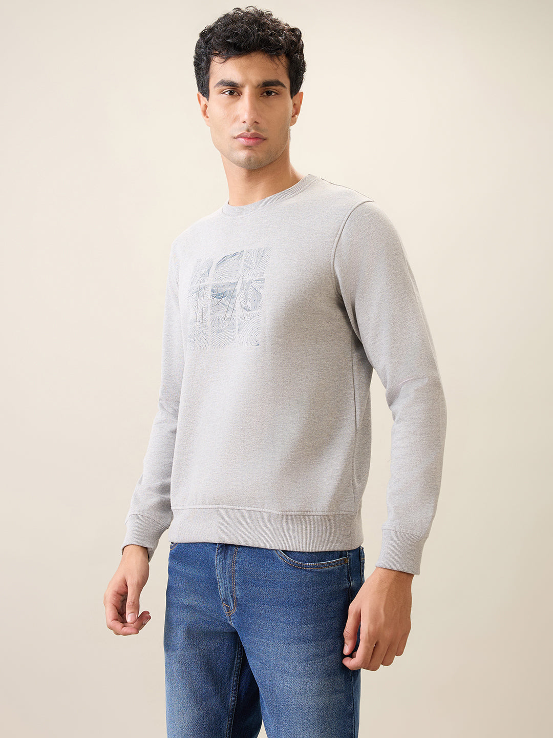 Park Avenue Men Grey Printed Slim Fit Cotton Blend Round Neck Collar Sweatshirt